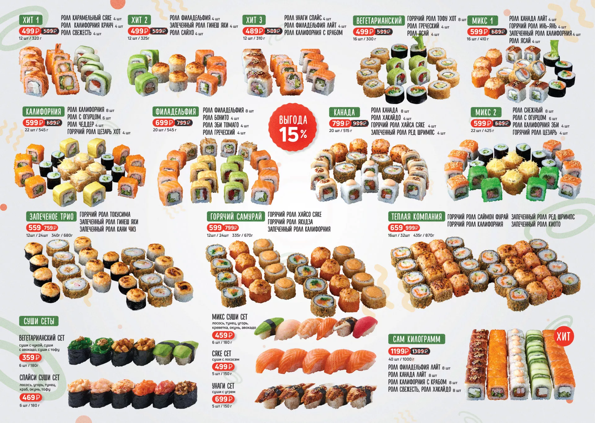 Оформление меню суши-бара «Roll Wok Club» в Киришах