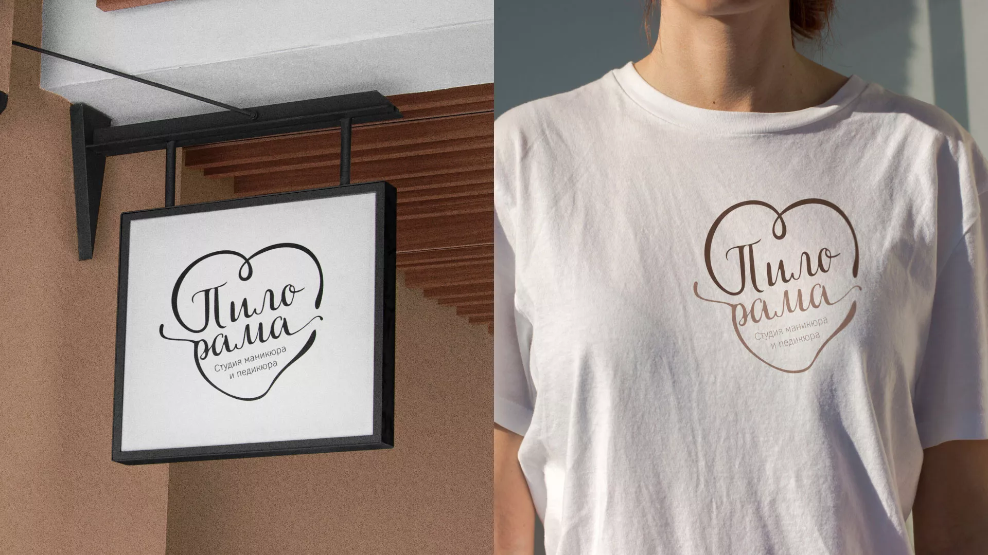 Разработка логотипа в Киришах для студии маникюра и педикюра «Пилорама», сопровождение фирменного стиля. Уютный, любимый бренд, покоряющий сердца клиенток качеством и уровнем сервиса — шрифтовой логотип заключенный в форму сердца.