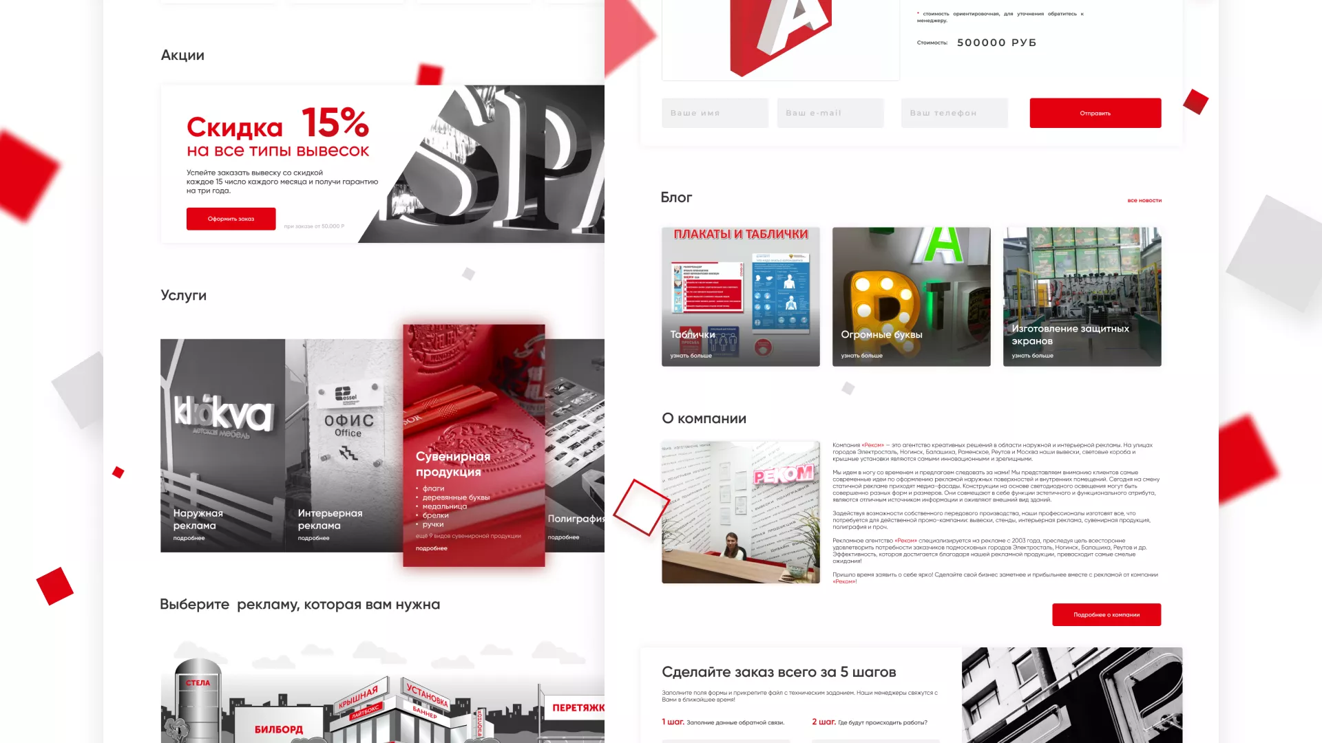 Стаж рекламно-производственной компании «РЕКОМ» — более 15 лет. Компания оказывает полный спектр услуг в Киришах по интерьерной и наружной рекламе, а также по широкоформатной печати и полиграфии.
