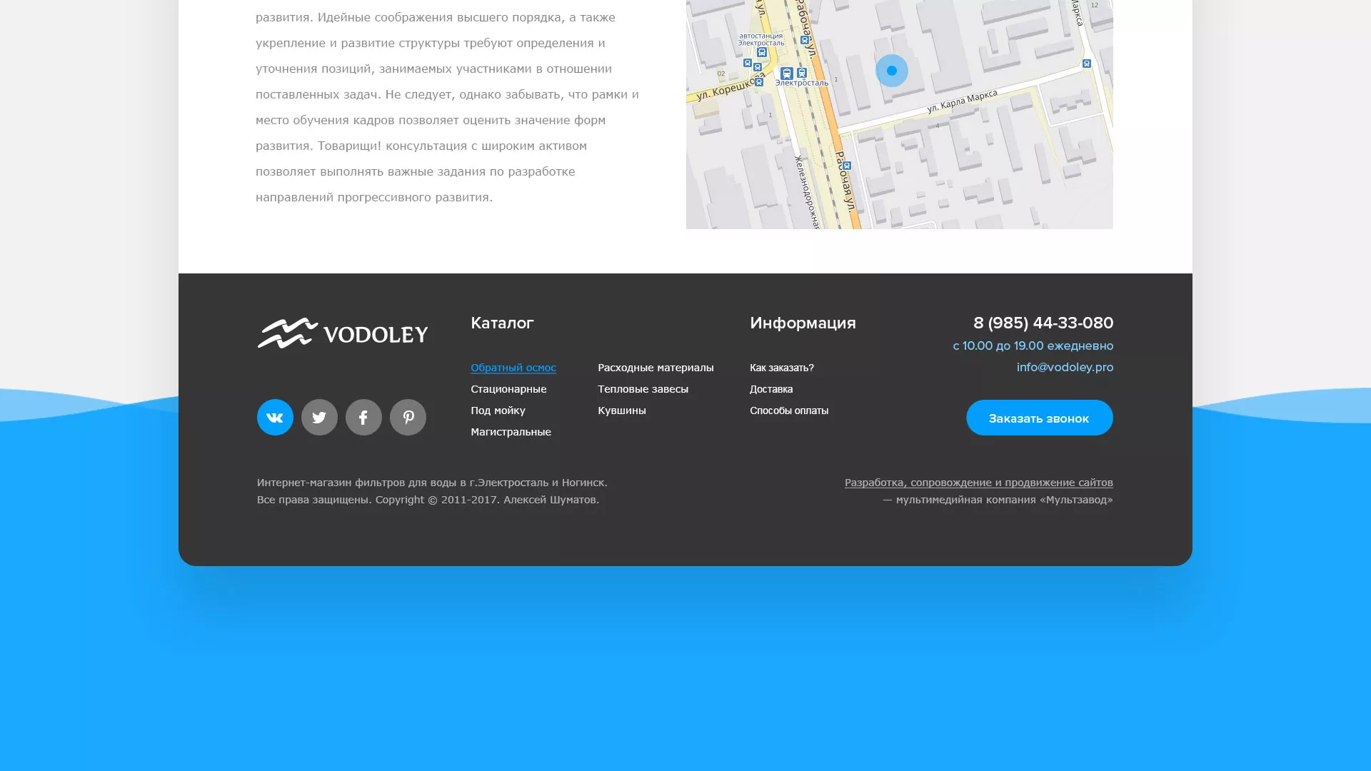 Работать с компанией «Мультзавод» удобно и легко, поэтому, если Вам требуется создание аналогичного сайта по продаже и установке фильтров очистных сооружений в Киришах, мы предложим Вам действительно выгодные цены и удобные условия сотрудничества. Мы обещаем, что вложенные в разработку сайта деньги окупятся и Вы получите современный рабочий интернет-магазин!